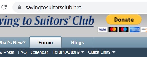 If you manually enter "https://" as a prefix to "savingtosuitorsclub.net" to enforce a secure connection if available, you will see the "Not secure" change to the locked padlock icon indicating a secure connection!