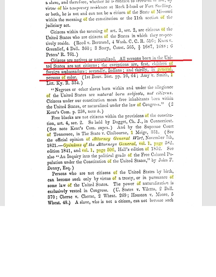 Ok, as linked above, I came across this opinion from Attorney General Bates where he is asked about a "colored" man in command of a ship if he was a citizen of the United States, previously Attorney General Wirt had the opinion that colored people could not be citizens of the United States.
