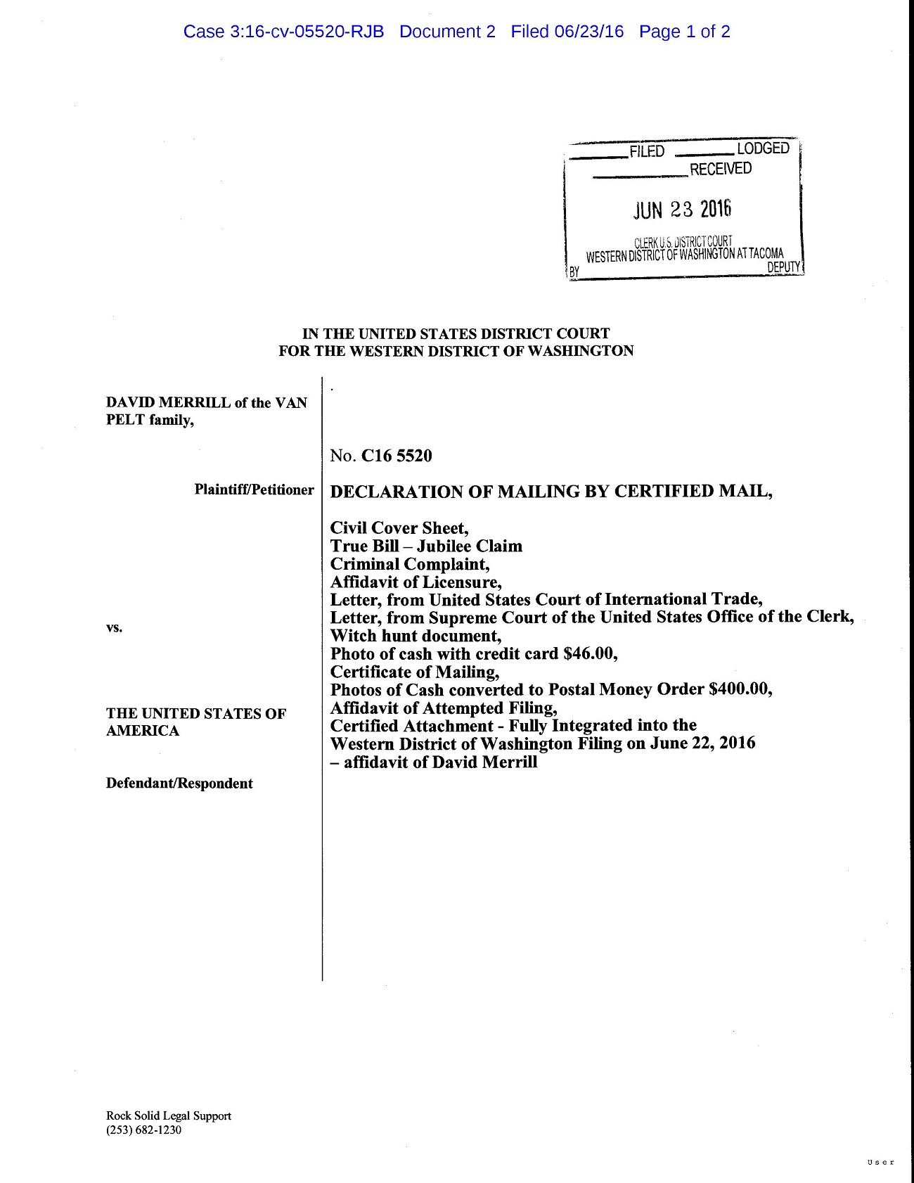 Otherwise this is going just great. The warrants arrived on July 15th to both the US Treasury and the US Attorney General. That was the day pretend federal judge Robert J. BRYAN was supposed to enter default judgment against me for failing to show cause otherwise.