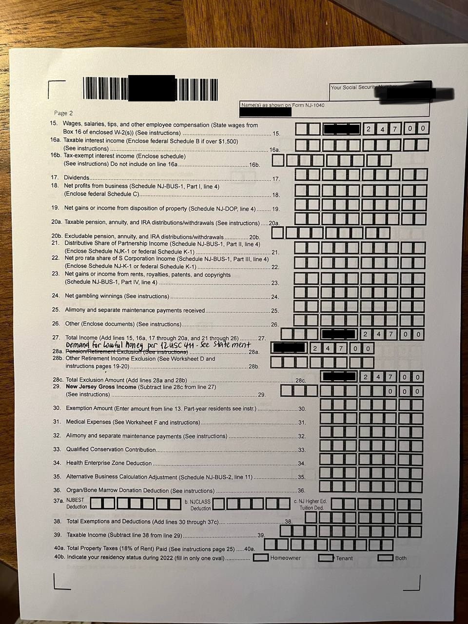 So many people are commuting from New Jersey to Manhattan, in New York, across the state line that New York and New Jersey have an agreement to share the income tax revenue. Some suitors have been effected by New Jersey billing their share of the revenue, based on ignorance of redeeming lawful money by demand.