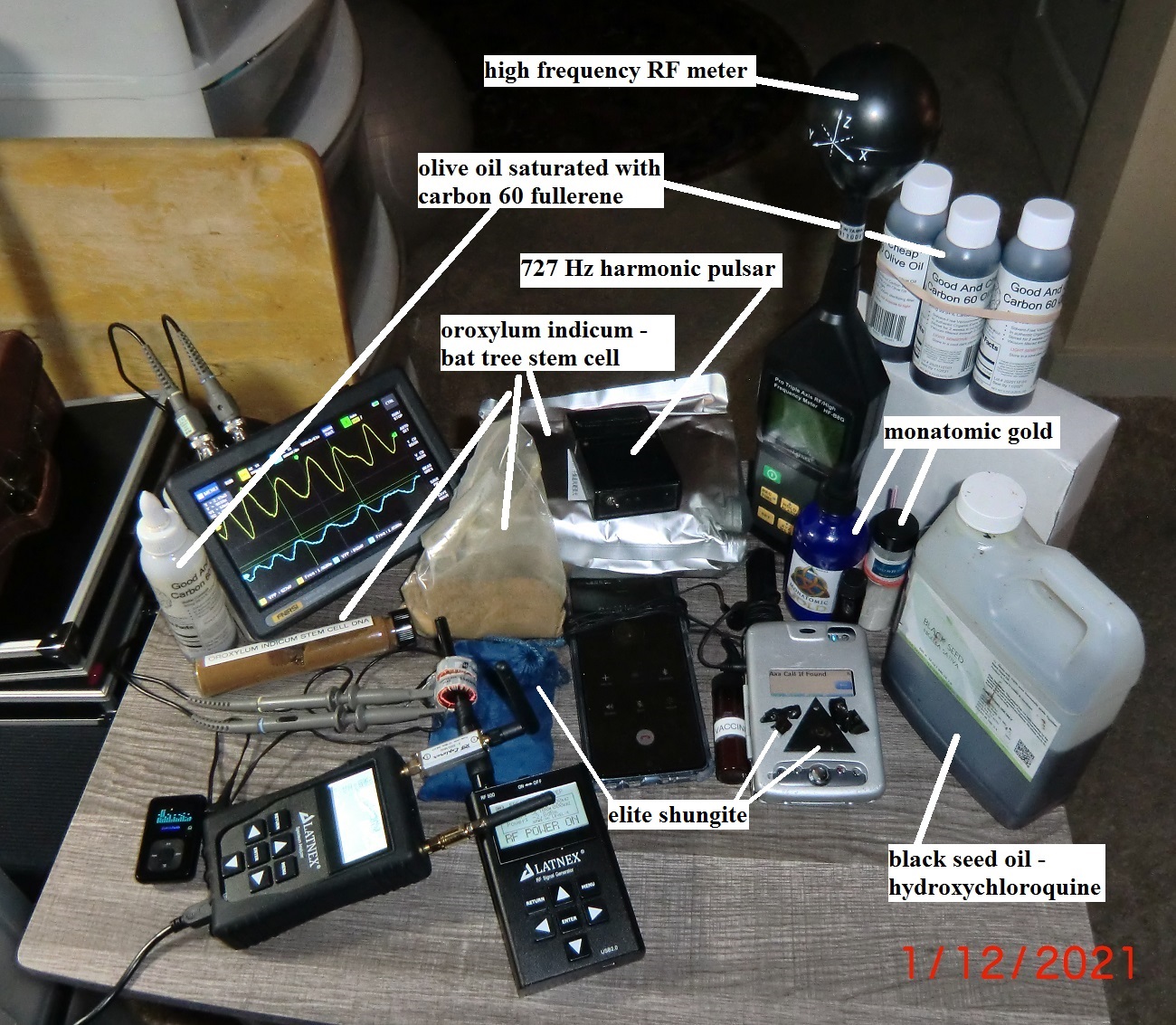 I use 5G to activate DNA and did so just this morning. But the implication is conspiracy theory about how some governmental alter is shaping the dangerous virus with 5G signals like I am using to inoculate the vaccine. The blue bag under the signal generator is elite shungite and the pairing of highward spin flavoring (exotic matter) is universal. Meaning that when I flavor it with the vaccine it also changes the flavor in all elite shungite - everywhere. Including the asteroid belt.