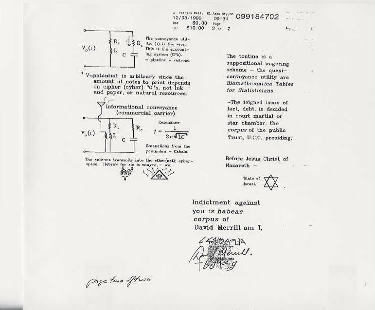 Non-negotiable Chargeback (NNCB) - The filer attempts to sell his/her birthright back to the government for a large dollar amount and requests that a "Treasury Direct Account" be set up to hold the money.