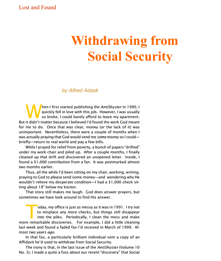 Related: Withdrawing From Social Security (Adask)