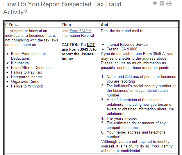 The IRS Form 3949-A "Information Referral" seems to be appropriate to the above topic.