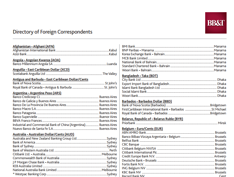 Just FYI. Keeping a list of your banks international and domestic correspondents can be very helpful.