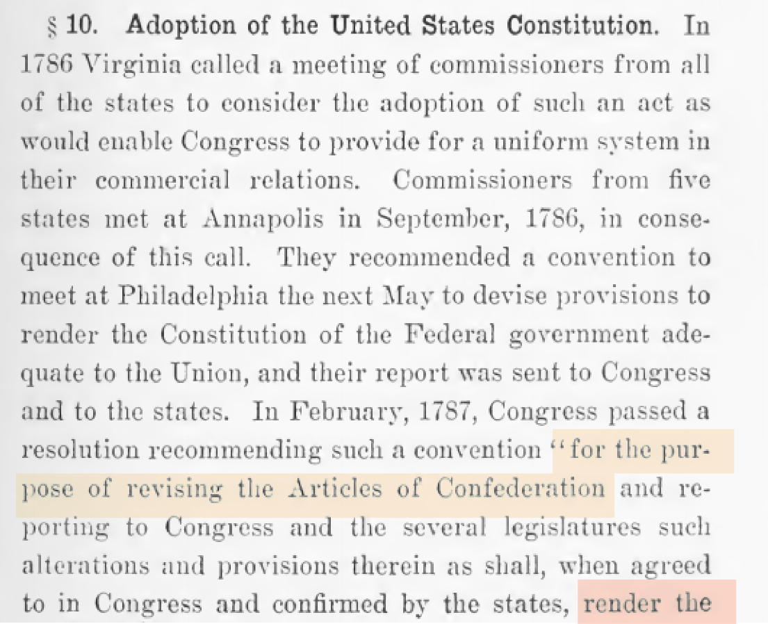 The commission of the delegates of the Philadelphia Convention of 1787 were to revise the Articles of Confederation, not to create a constitution.
