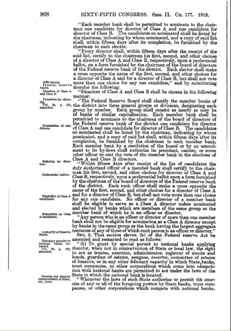 This is from section 4.20 of the Federal Reserve Act concerning requirements for "Class C Directors". In particular note the requirement of being a "resident of the district":