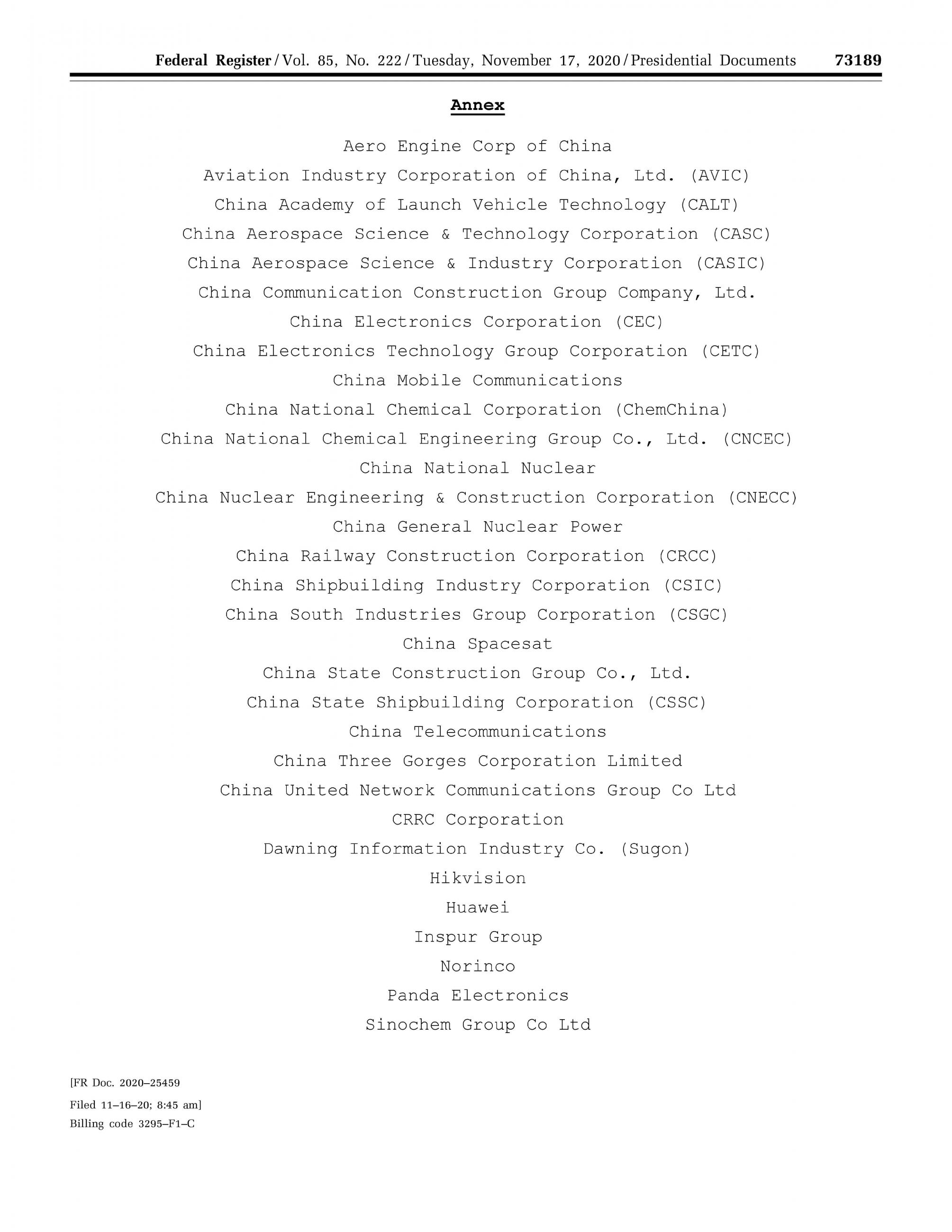 And then there is a matter of all the promises that Hunter allegedly made to the Chinese. Starting January 10 nobody will be doing business with these companies. But this is just the beginning of the sanctions and the beginning of the list too.