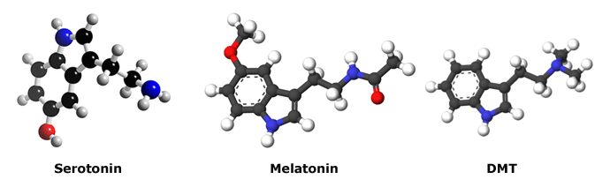 Most filters have it that the creative imagination is additional above and beyond the concrete mundane time-space continuum. My speculation is that the solidity of the time-space continuum with material reality is a derivation of imagination according to the neurochemistry of DMT. DMT is found in all living things, apparently melatonin is much easier to measure and so becomes the subject of the paper. But look again above at how similar the chemical structure is and I am speculating that the 100% of the mixture is part one, and part the other depending on what time of day by the communal sidereal clock.