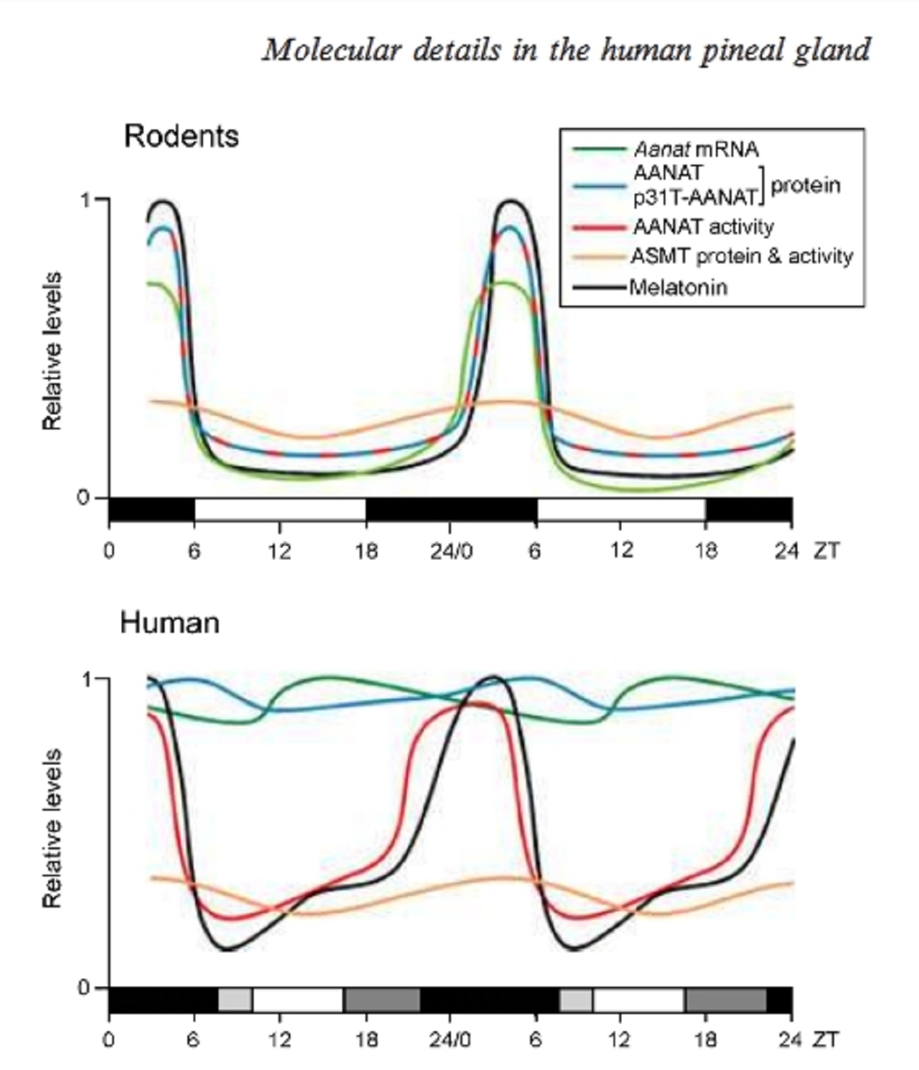 I read an interesting paper (attached) recently about the pineal gland. I have modified one of the graphs on my hypothesis that melatonin "cancels" dimethyltryptamine. This hypothesis is formulated by direct experience and intuition, and is not very scientific. But take a look at how easily one may be converted chemically to the other and back again and I think you might find it convincing.
