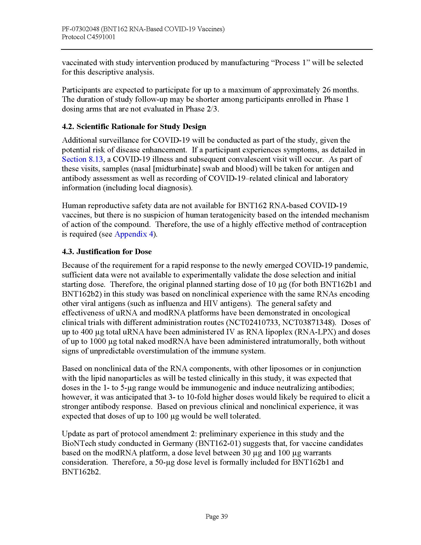 Feel the grammar? This is Pfizer and BionTech intentionally avoiding the creation of any evidence that the mRNA might cause any birth defects, including infertility.4.2. Scientific Rationale for Study DesignHuman reproductive safety data are not available for BNT162 RNA-based COVID-19 vaccines, but there is no suspicion of human teratogenicity based on the intended mechanism of action of the compound. Therefore, the use of a highly effective method of contraception is required (see Appendix 4).