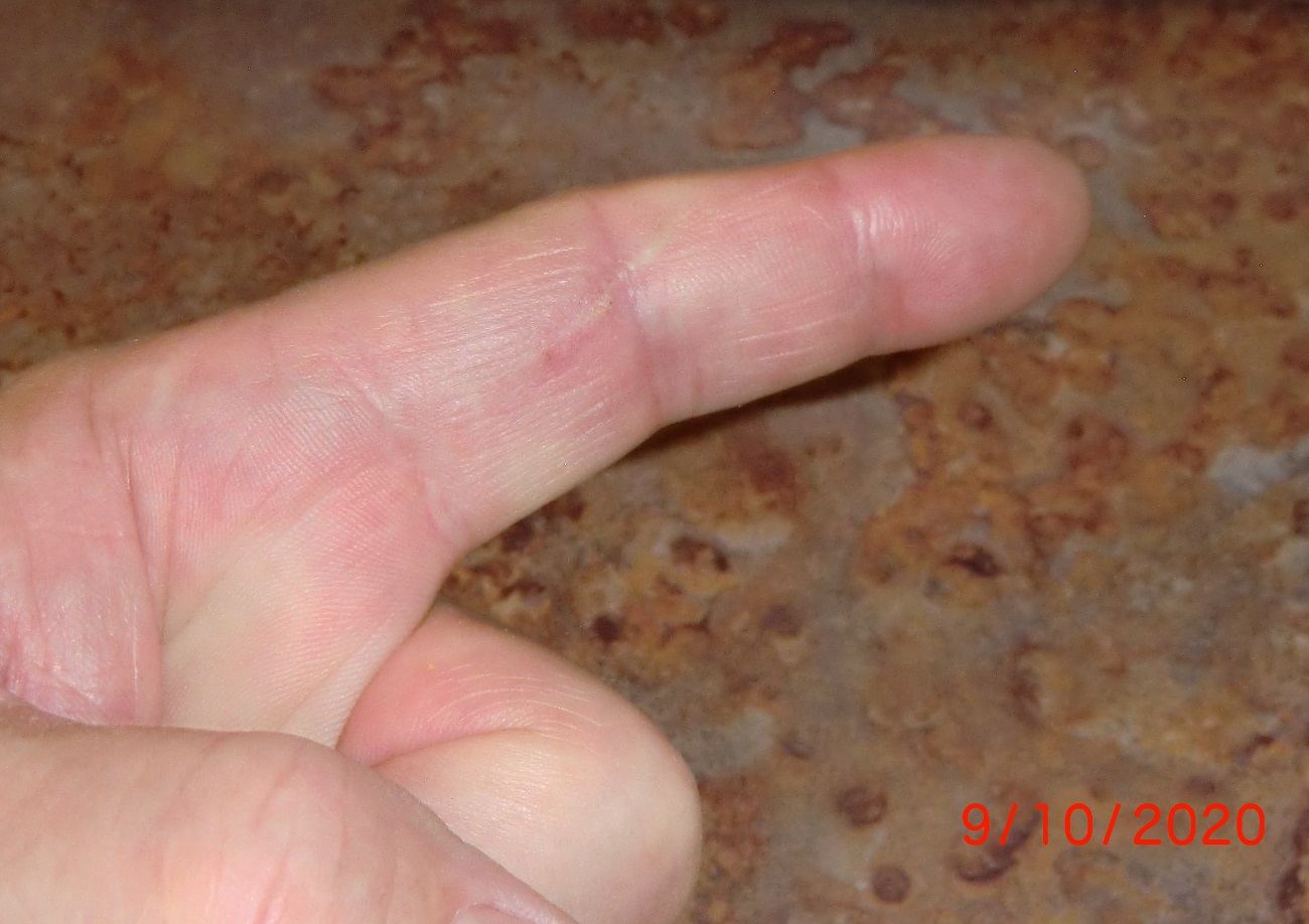In the alternative to intelligent information streaming, we have electrostatic Arc. In this BEFORE photo, I had already applied the scar eraser slightly, to the entire scar. Without thinking of taking photos. Then I decided to erase half of the scar for science, leaving half.
