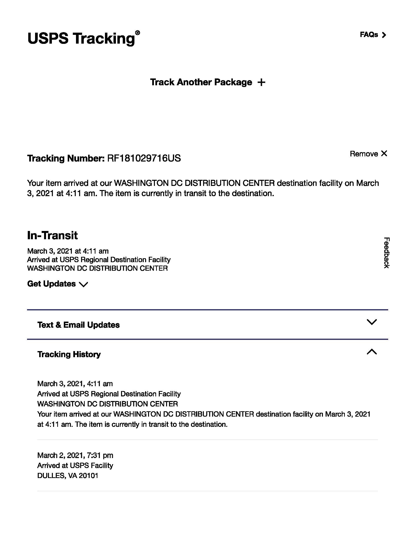 They stopped attaching dates to the report. We are talking about collusion between the US Treasury, the USDC, the DoJ and the Postmaster General with Registered Mail. So yesterday I called the process server who mailed it and offered him $100 to follow up on the lost RM package. Then look - magically delivered: