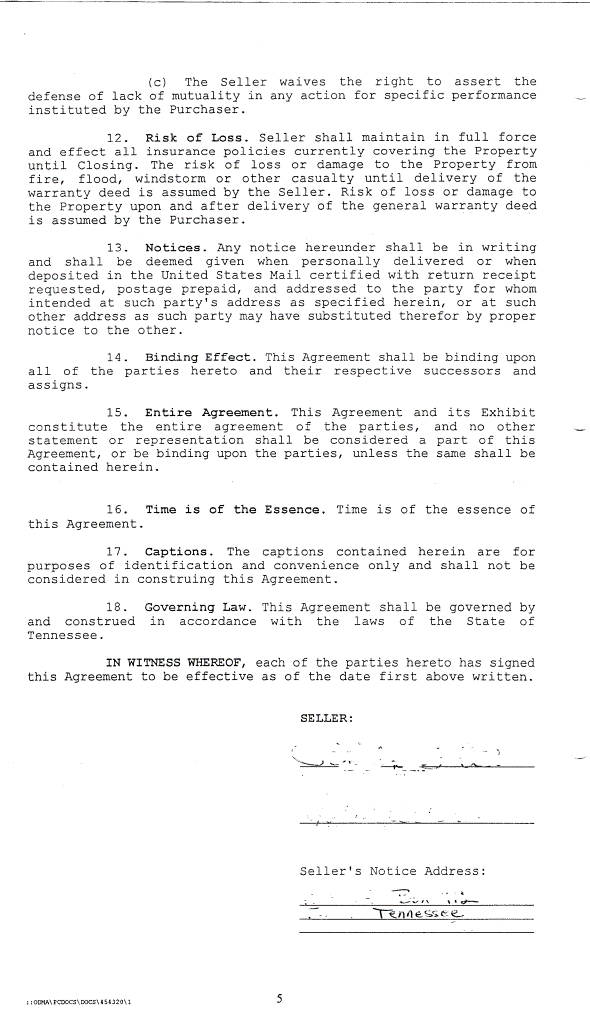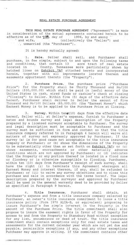 He drew up the following Real Estate Purchase Agreement for me to use.