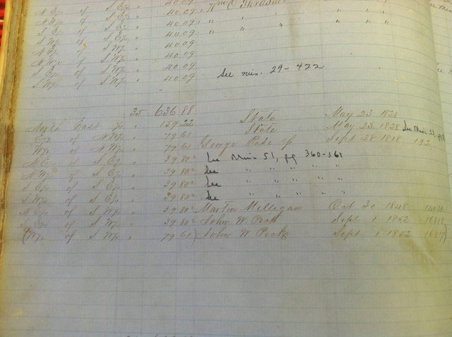 All tracts (Land grants and patents) are recorded in this book at the courthouse. The last entry for my 160 acre tract was in 1852 - 24 years after the land grant from the United States.