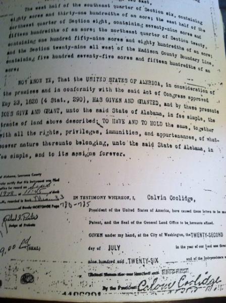Our Grant was signed by Calvin Coolidge. To be honest with you, it's hard to take everything in the Patriot mythos. There are conflicting messages, the constant beratement on opposing websites when trying to google certain things, and a few absurd things (to me) and stuff I just can't verify to save my life except on other "Patriot" or "Freeman" sites.