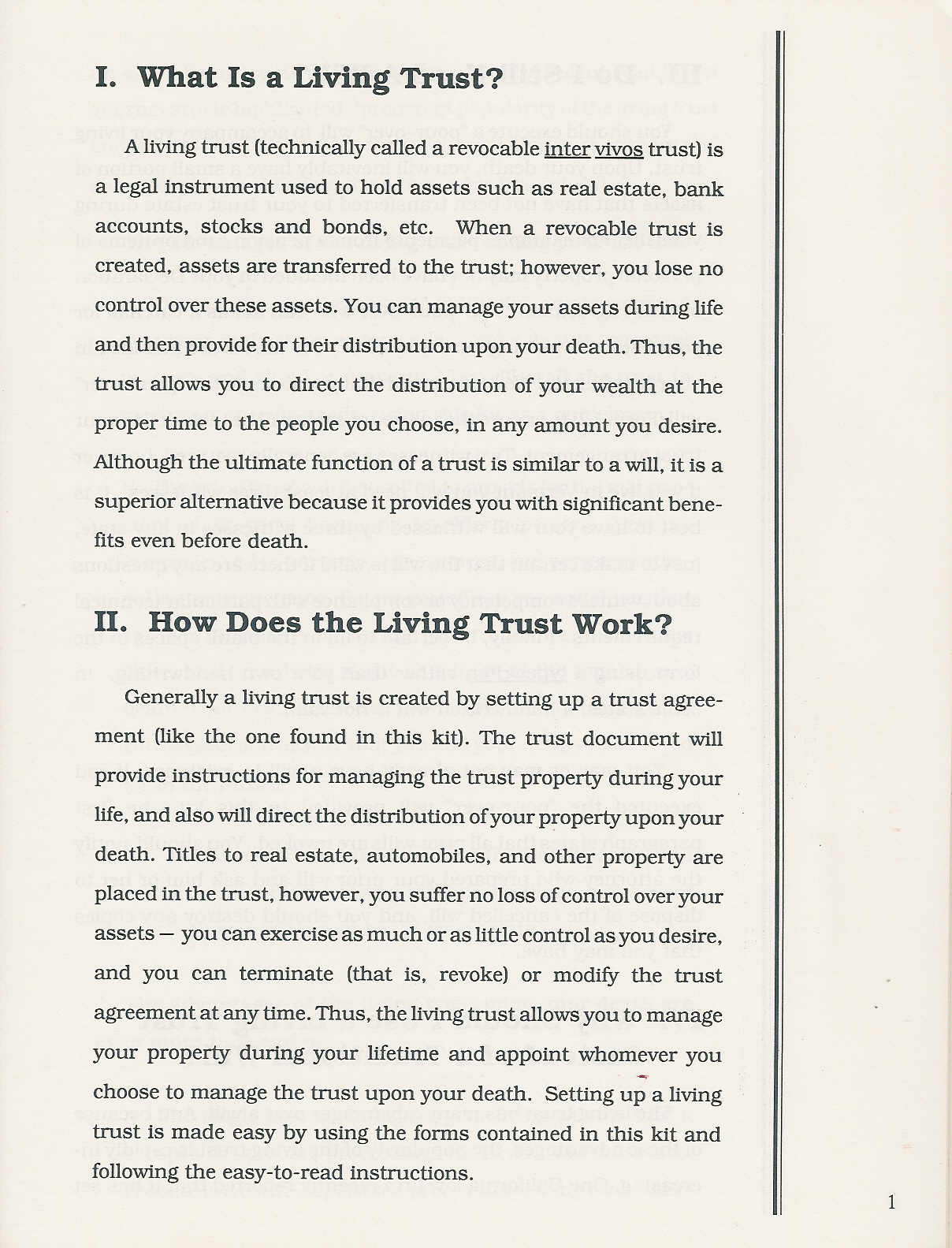 That is incomplete but helps get an idea of living trust expression. However the very term can be its definition: Trust as a Living Idea. Trusts and estates are the idea around an object. The book belonged to my mother. She left it to me in trust. She also told me about my heritage, extensive research into our family tree, trusting that the knowledge might live on through me.