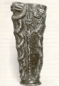 Canaanite libation vase depicting a serpent and a dragon. Serpents were used to symbolize fertility.