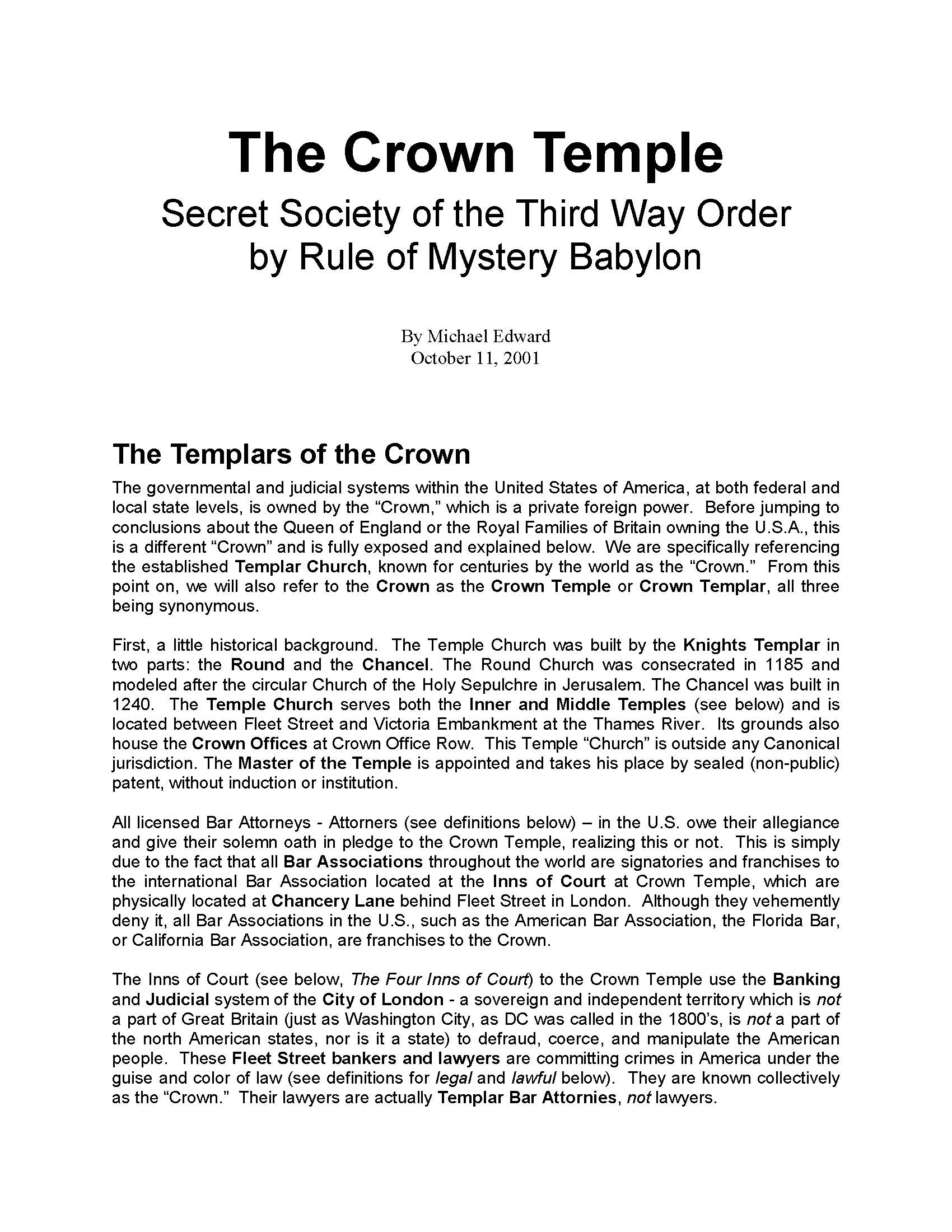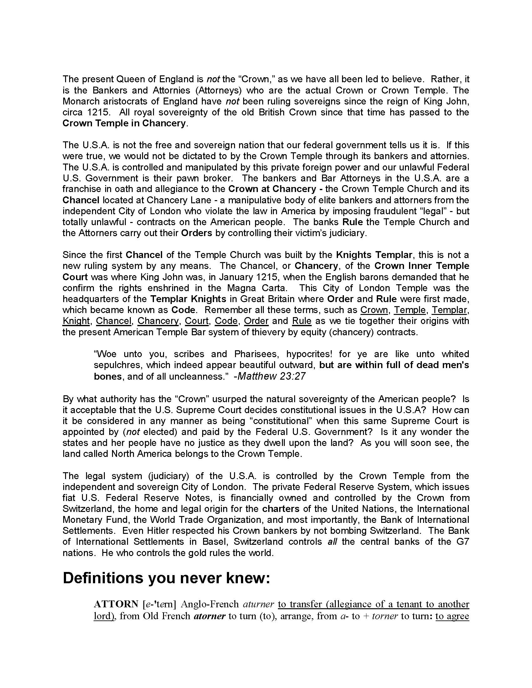 The "Lord of lords" is correctly identified at the end of the Article - Page 8, paragraph 4. YOU, You and you. The King of Kings is PENDRAGON. Self-activation is your destiny. Know your heritage.