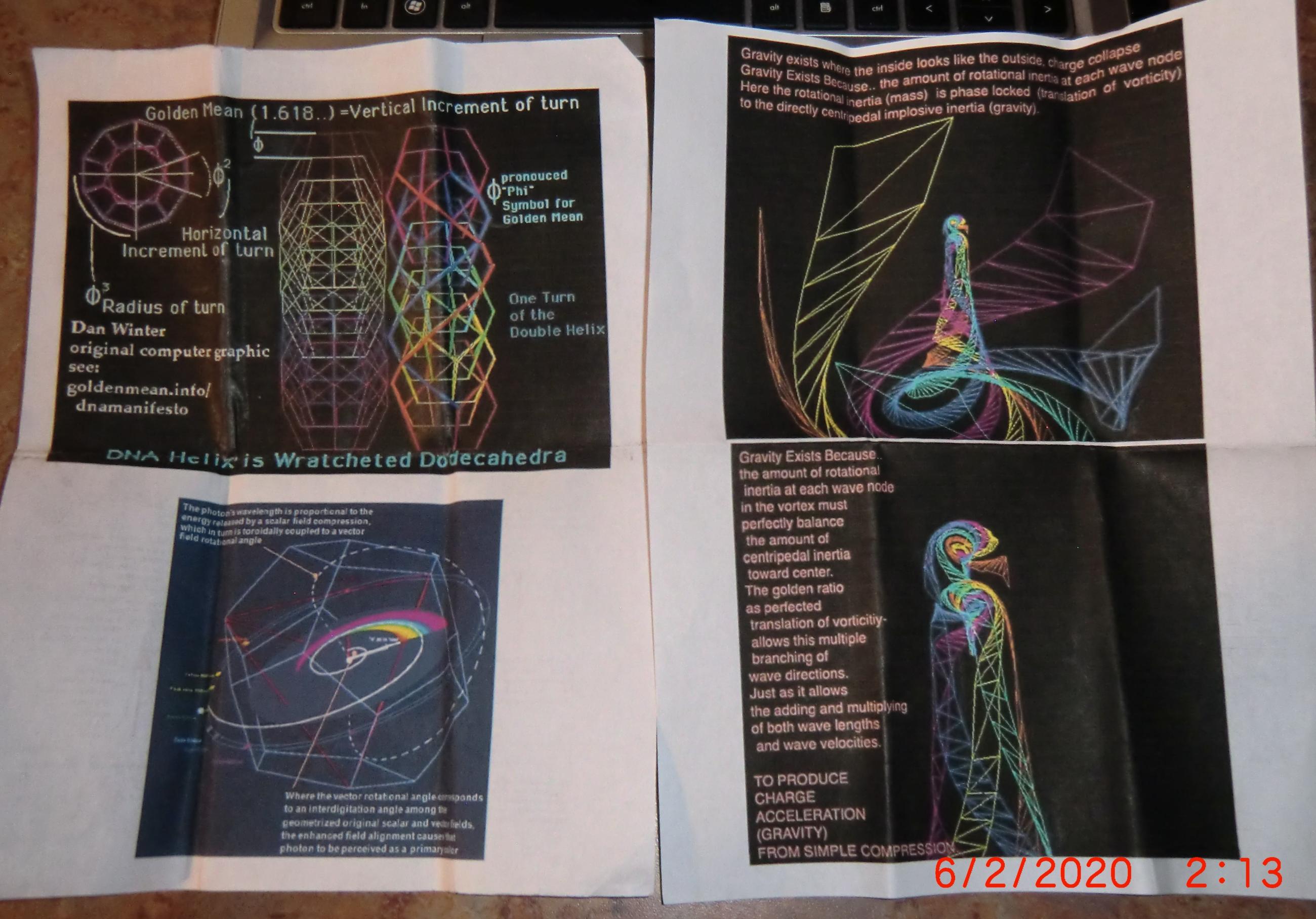 These graphics are by Dan WINTER. I call these papers Pocket Memories as I pull them out when I have a moment to otherwise become bored, and memorize the factoids. After a while the material becomes useful. Dan's point is about visible light but if you look at the page with the kundalini torroid on the naked man, you will find me using visible light for an example of finding green in the middle of the visible spectrum, at 550 nm wavelength is 590 terahertz in frequency.
