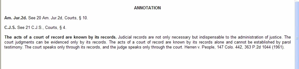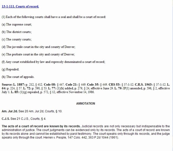 Chex brought up a good argument about de facto authority, and I have examined some arguments in the Colorado courts too. The attempts to find "proof" or even evidence on the Internet fails rules of evidence. I believe by some of your points that you know that.