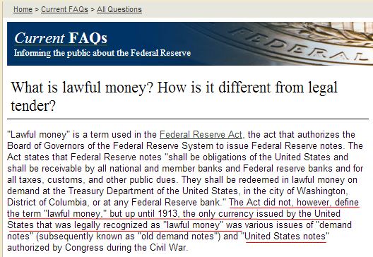 Notice that this FAQ does define lawful money... see highlighted words below:Originally posted by walter View Post
